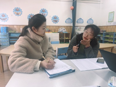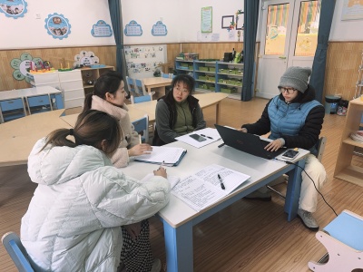 12月22日中午,观察组教师结合集体活动观摩中的师幼互动进行观察记录的分享。两组教师共同思考哪些指导方式能激发孩子表达创意,哪些环节孩子的创作热情有所回落?集体活动里孩子的互动表现、创作参与度,哪些表现和作品里呈现的创作思路能对应上?同时提出了具体的改进建议与实践思路。