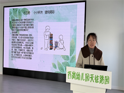 接着,各年级组选派代表,分享了各班幼儿在班级中与阿基米德积木的互动过程。
