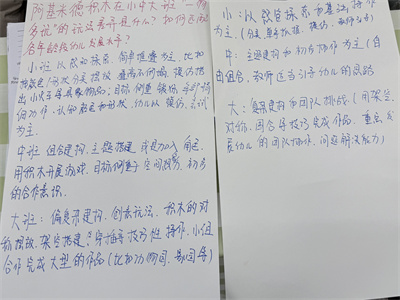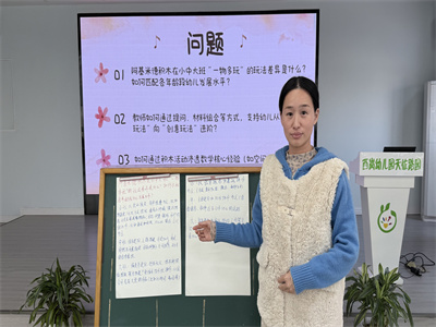 张老师说:用阶梯式提问撬动思维进阶,如:是什么、像什么提问引导联想,用“怎么做”提问引导简单组合。用“为什么”“怎么样”提问引导幼儿优化结构。用多元化材料结合拓展玩法,如:小班提供具体的基础的辅助材料:汽车、玩偶等,中班提供功能性材料:磁力片、管道积木等,大班提供探究性材料:纸板、树枝等低结构材料。
